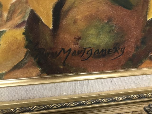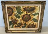 Sunflower Painting by Pam Montgomery, on canvas, modern gold gilt framed, 22"h., 25"w. Sunflower Painting by Pam Montgomery, on canvas, modern gold gilt framed, 22"h., 25"w.