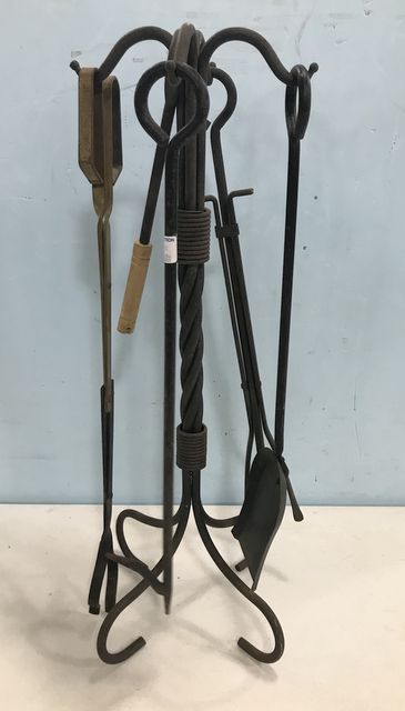 Heavy Duty Metal Fireplace Tool Set, tongs, shovel, porker, stand, 30"h. Heavy Duty Metal Fireplace Tool Set, tongs, shovel, porker, stand, 30"h.