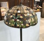 Replica slag glass floor lamp, multi color plastic shade, 62"h. Replica slag glass floor lamp, multi color plastic shade, 62"h.