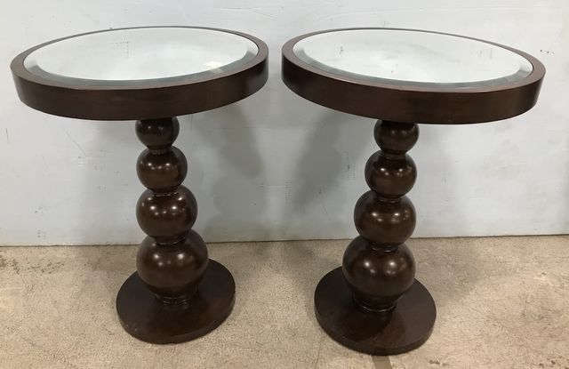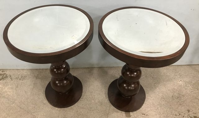 Pair of Contemporary Style Round Mirrored Top Accent Table, pedestal, beveled mirror, 26"h., 20"dia. Pair of Contemporary Style Round Mirrored Top Accent Table, pedestal, beveled mirror, 26"h., 20"dia.