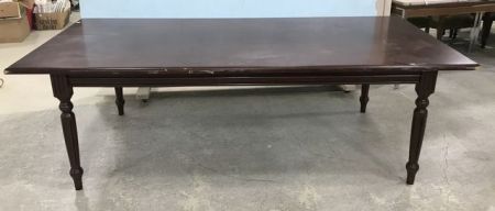 Large Modern Dinning/Conference Style Table, one piece, no leaves, bolt on legs, has swirls and wear on top, rectangle, 29"h., 93"w., 46"d. Large Modern Dinning/Conference Style Table, one piece, no leaves, bolt on legs, has swirls and wear on top, rectangle, 29"h., 93"w., 46"d.