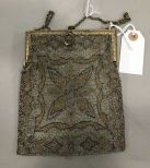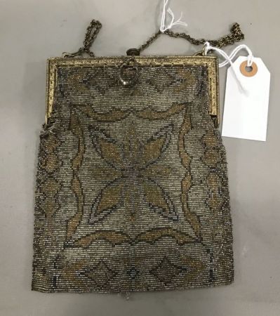 French Style Beaded Purse, metal clasp, has worn area on side, chain link strap, 7"h., 6"w. French Style Beaded Purse, metal clasp, has worn area on side, chain link strap, 7"h., 6"w.