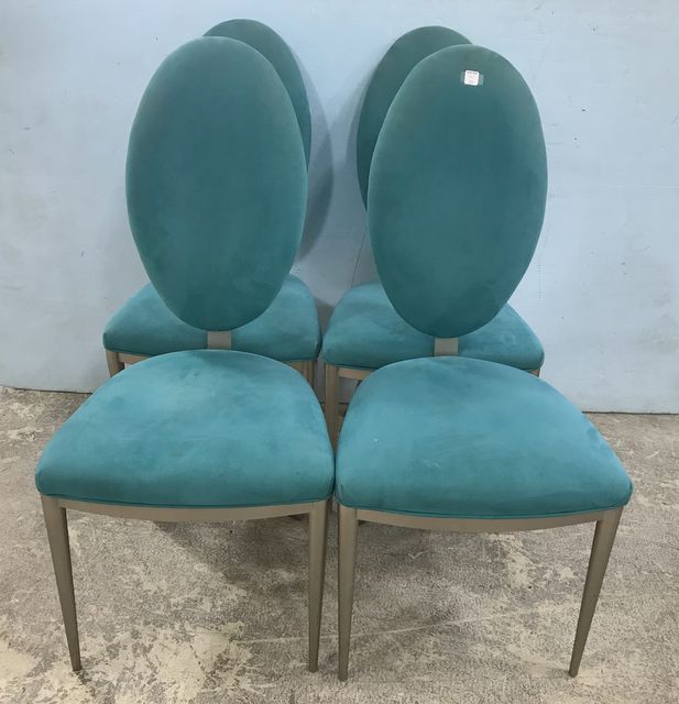 Contemporary Metal Dinning Chairs, blue fabric, metal frame, 42"h. Matches lot 0700. Contemporary Metal Dinning Chairs, blue fabric, metal frame, 42"h. Matches lot 0700.