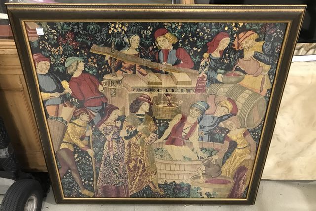 Large Frame Tapestry European Scene, gold gilt framed, glassed, 40"h., 42"w. Large Frame Tapestry European Scene, gold gilt framed, glassed, 40"h., 42"w.