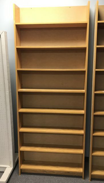 Oak Finish Wall Mount Bookcase, 7 shelves, sturdy, can be tilted against wall or mounted, 7'6"h., 3'w. Oak Finish Wall Mount Bookcase, 7 shelves, sturdy, can be tilted against wall or mounted, 7'6"h., 3'w.