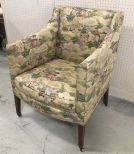 Oriental Style Upholstery Arm Chair, Scene fabric pattern, on wheels, 37"h. Oriental Style Upholstery Arm Chair, Scene fabric pattern, on wheels, 37"h.