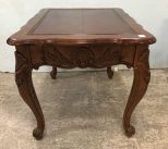 Modern French Style Lamp Table, single drawer, shell decor trim, scalloped edge border, 23"h., 24"w., 28"d. Modern French Style Lamp Table, single drawer, shell decor trim, scalloped edge border, 23"h., 24"w., 28"d.