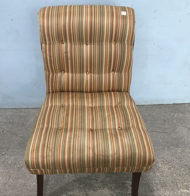 Modern Striped Side Chair, button back, has stains, 34"h. Modern Striped Side Chair, button back, has stains, 34"h.
