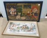 Framed rectangle prints, Christmas elfs scene, 16"h., 29"w. Framed rectangle prints, Christmas elfs scene, 16"h., 29"w.