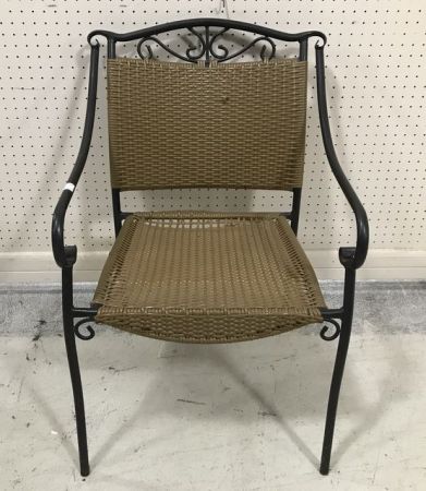 Metal Woven Patio Arm Chair, plastic woven seat, 32"h. Metal Woven Patio Arm Chair, plastic woven seat, 32"h.