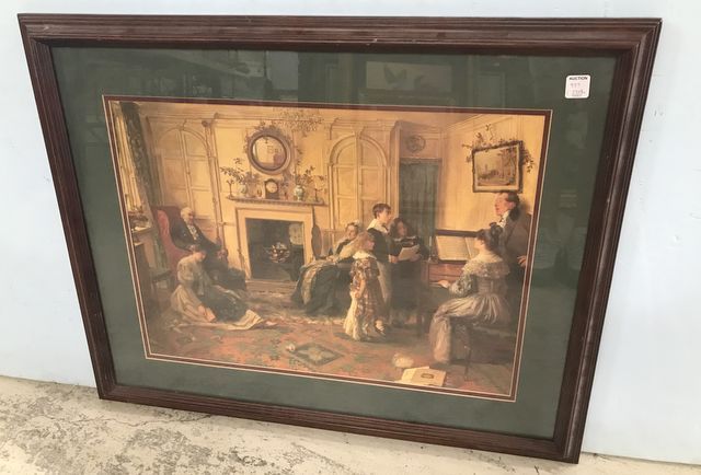 Print of 1800's Music Room Scene, modern decor, framed 24"h., 31"w. Print of 1800's Music Room Scene, modern decor, framed 24"h., 31"w.