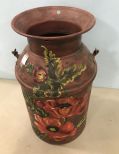 Vintage hand painted floral design milk jug, no lid, handled, 19"h., 9"dia. Vintage hand painted floral design milk jug, no lid, handled, 19"h., 9"dia.
