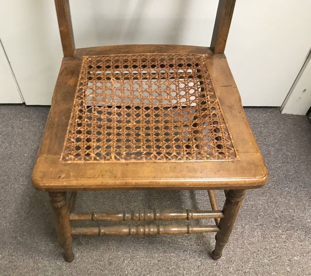 Stick and Ball Eastlake Cane Seat Side Chair, cane bottom, cane has some damaged, 34"h. Stick and Ball Eastlake Cane Seat Side Chair, cane bottom, cane has some damaged, 34"h.