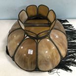 Vintage Slag Glass Lamp Shade, beaded metal frame, tassel hanging border. Vintage Slag Glass Lamp Shade, beaded metal frame, tassel hanging border.