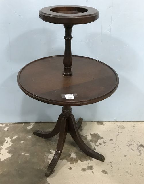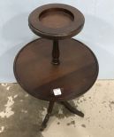 Mini Duncan Phyfe Two Tier Stand, round display shelves, four brass cap feet pedestal, 24"h. Mini Duncan Phyfe Two Tier Stand, round display shelves, four brass cap feet pedestal, 24"h.