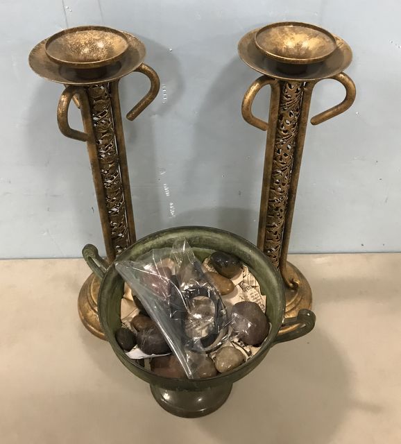 Decorative Rustic Color Candle Holders 17"h and decor metal urn. Decorative Rustic Color Candle Holders 17"h and decor metal urn.