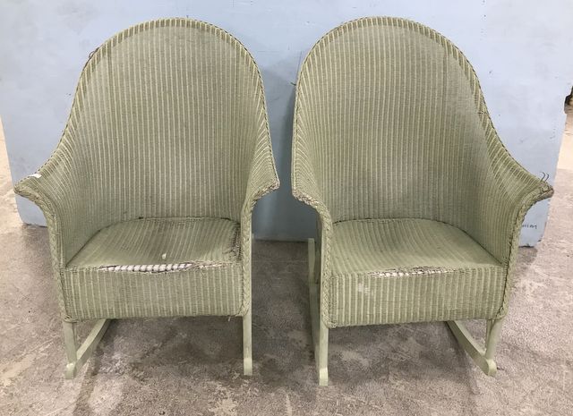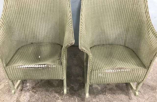 Vintage Wicker Rockers, seats are worn, 39"h. Vintage Wicker Rockers, seats are worn, 39"h.