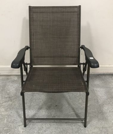 Fold out patio chair, mesh seat, 34"h. Fold out patio chair, mesh seat, 34"h.