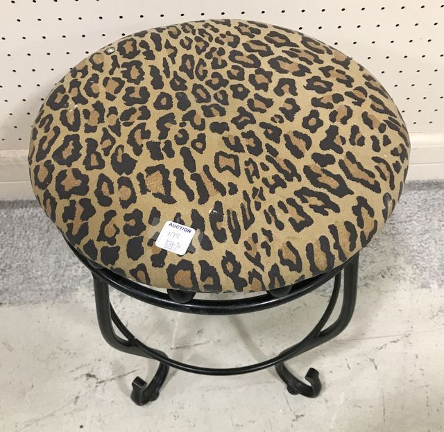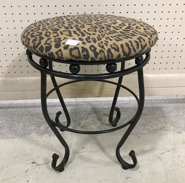 Leopard Print Top Modern Stool, metal frame, 16"h., 14"dia. Leopard Print Top Modern Stool, metal frame, 16"h., 14"dia.