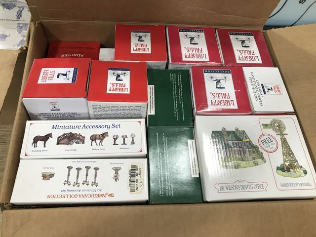Large Collection of Liberty Falls Miniatures, three boxes full, in boxes, assorted styles and types. Large Collection of Liberty Falls Miniatures, three boxes full, in boxes, assorted styles and types.