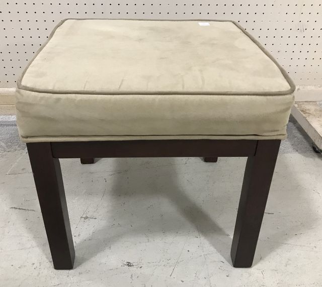Modern Upholstered Top Stool, has stained on top, 17"h., 18"sq. Modern Upholstered Top Stool, has stained on top, 17"h., 18"sq.