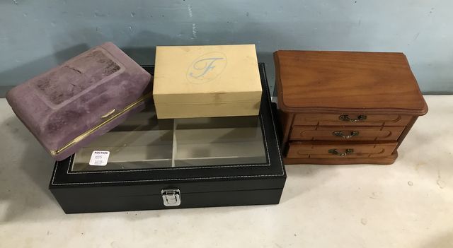Small wood jewelry chest, jewelry lift top cases, and glass top lift top case 10"d. 13"w. Small wood jewelry chest, jewelry lift top cases, and glass top lift top case 10"d. 13"w.