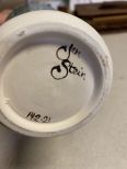 Rouletted Pottery Vase by Jen Stein, hand crafted, painted, includes info card, 11"h. Rouletted Pottery Vase by Jen Stein, hand crafted, painted, includes info card, 11"h.