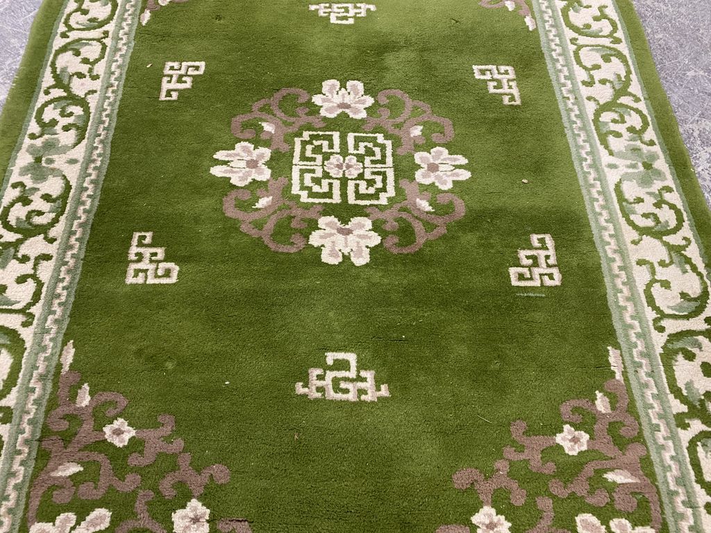 Royal Rama Indo Chinese Wool Rug 4'3x 6', green, hand woven, good condition. Royal Rama Indo Chinese Wool Rug 4'3x 6', green, hand woven, good condition.