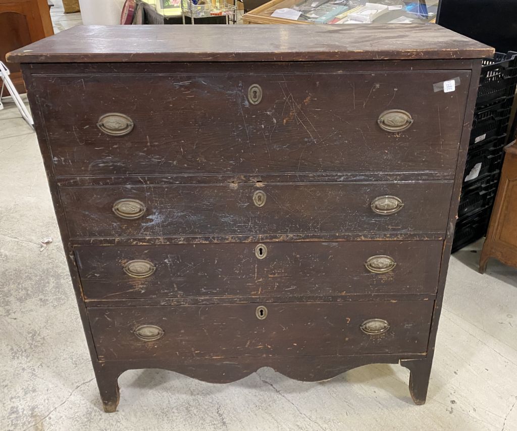 Late 1800's Chest Trunk, Lift top trunk storage, two drawers, needs refinishing, is functional, unique piece, 44"h., 42"w., 19"d Late 1800's Chest Trunk, Lift top trunk storage, two drawers, needs refinishing, is functional, unique piece, 44"h., 42"w., 19"d