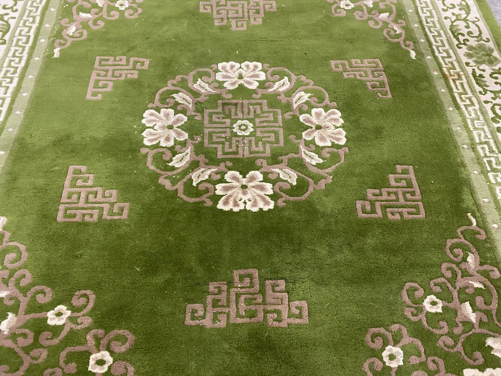 Haynes Floor Decor Indo Chinese 8 x 10, green, Wool hand woven, good condition Haynes Floor Decor Indo Chinese 8 x 10, green, Wool hand woven, good condition