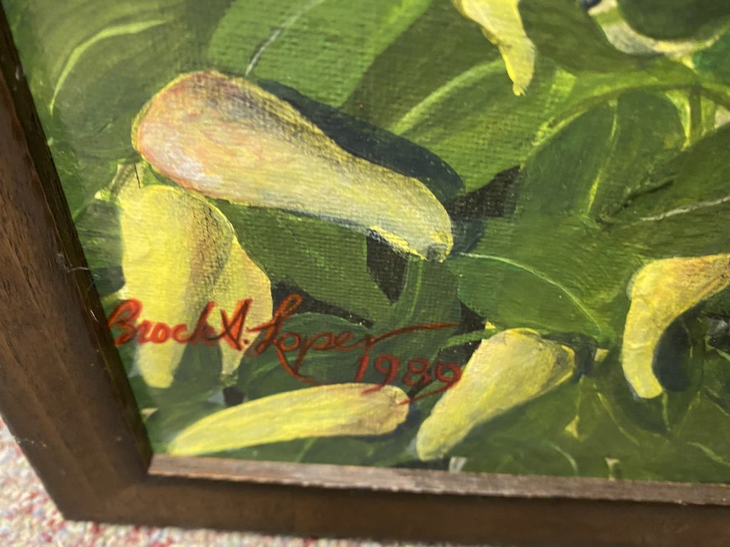 Brock Loper Painting of Lady on Porch, on masonite, signed lower left, framed, 30"h., 21"w Brock Loper Painting of Lady on Porch, on masonite, signed lower left, framed, 30"h., 21"w