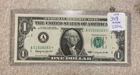 1963 Federal Reserve Note, Star Note, Crisp Uncirculated, plastic case. 1963 Federal Reserve Note, Star Note, Crisp Uncirculated, plastic case.