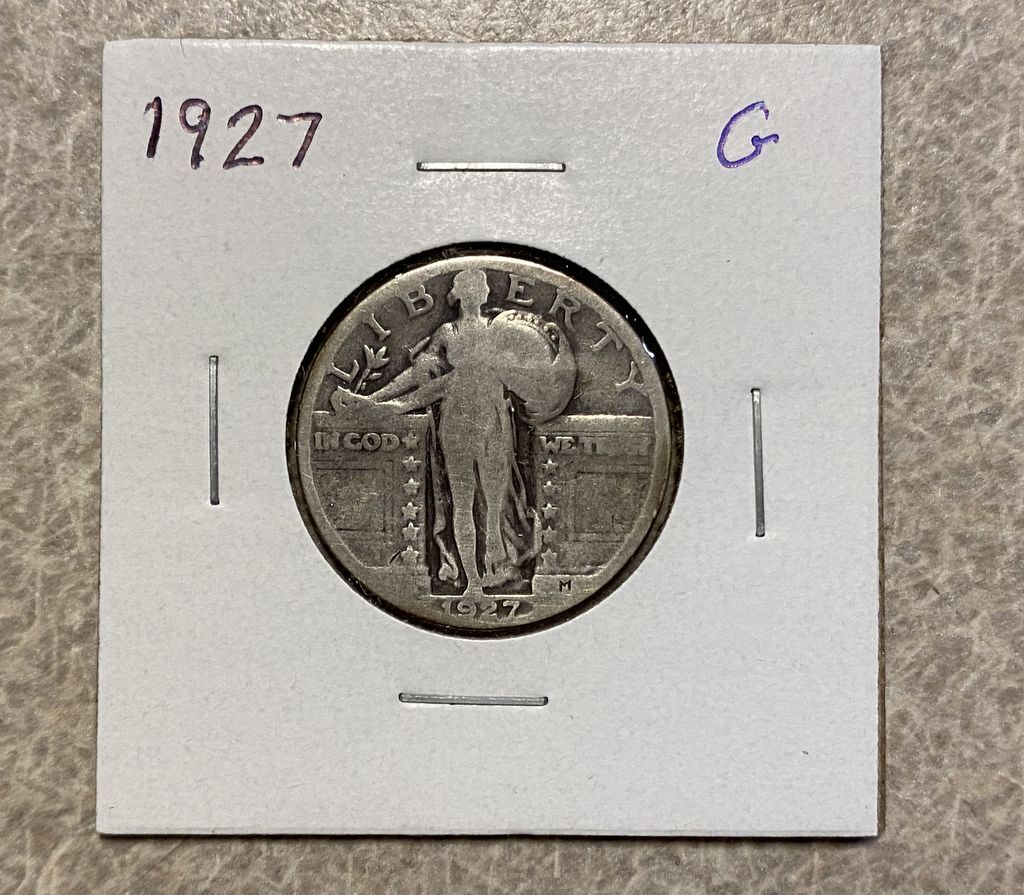 1927 Standing Liberty Quarter, Good condition, paper case. 1927 Standing Liberty Quarter, Good condition, paper case.
