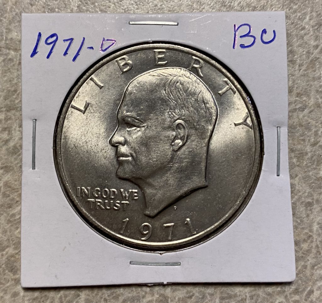 1971-D Eisenhower Dollar Bu, paper case. 1971-D Eisenhower Dollar Bu, paper case.