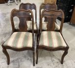 Four Antique Empire Side Dining, Striped cushion, burl mahogany, light wear. Four Antique Empire Side Dining, Striped cushion, burl mahogany, light wear.