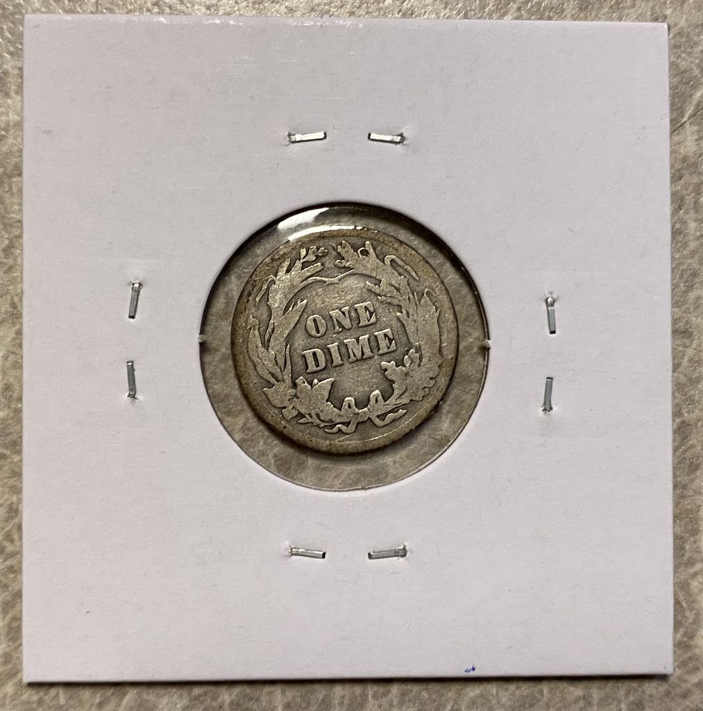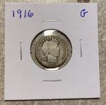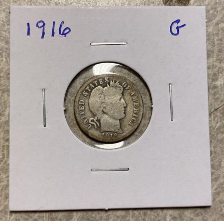 1916 Barber Dime, good condition, paper case. 1916 Barber Dime, good condition, paper case.