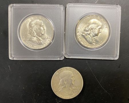 Three 1963 Franklin Half Dollars, good condition. Three 1963 Franklin Half Dollars, good condition.