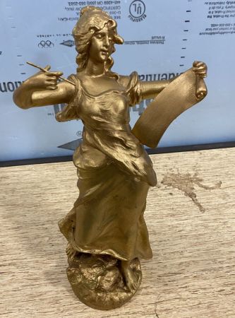 Painted Gold Lady Figure Statue, metal, 19"h. Painted Gold Lady Figure Statue, metal, 19"h.