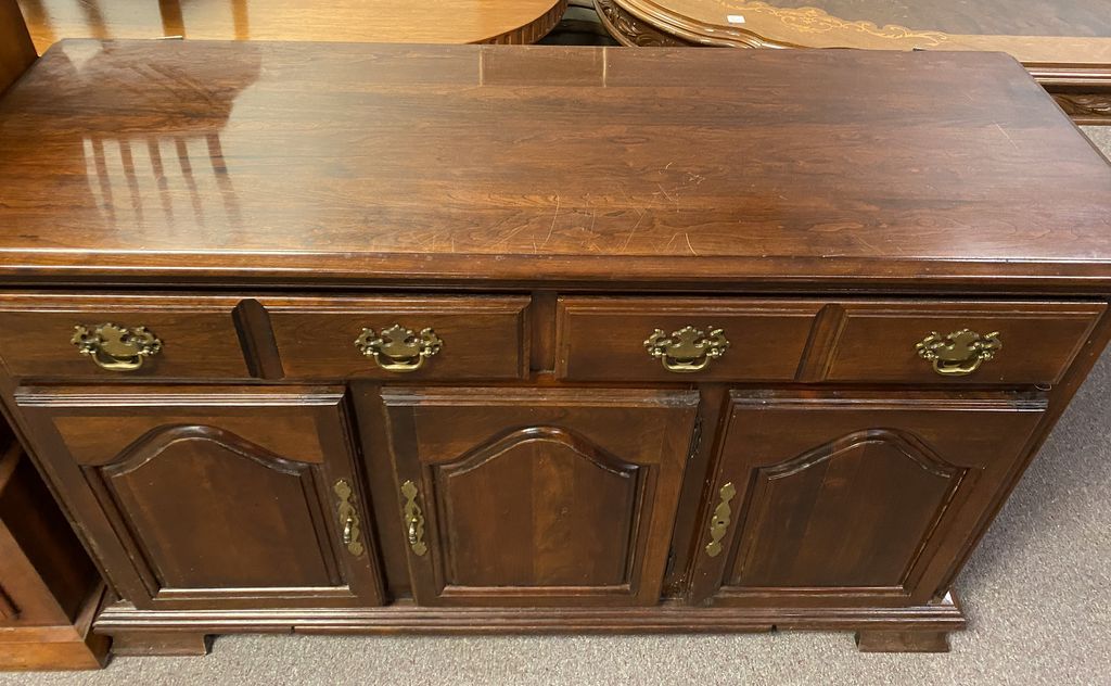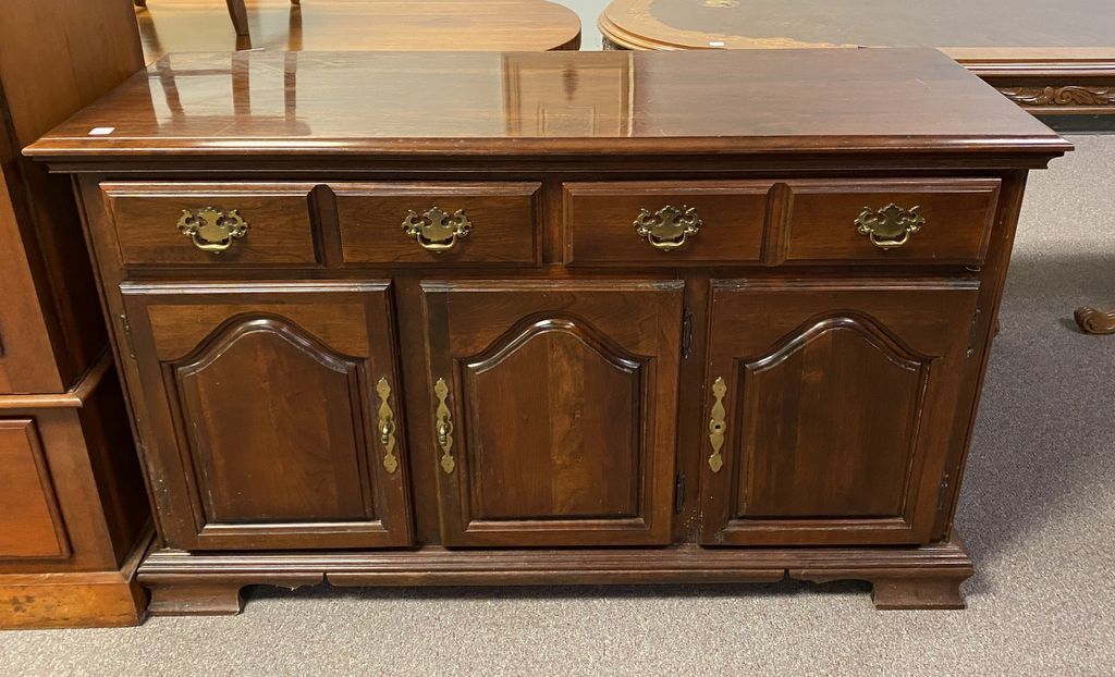 Kincaid Cherry Server, two drawers, three door, has finish wear, 32"h., 54"w., 19d Kincaid Cherry Server, two drawers, three door, has finish wear, 32"h., 54"w., 19d
