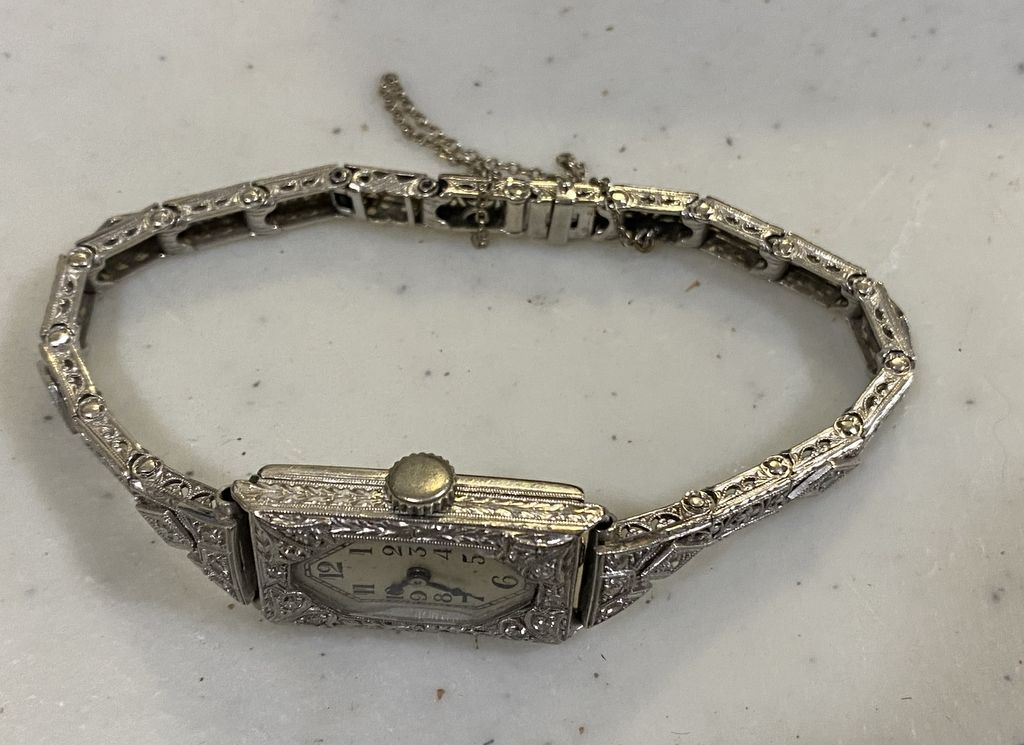 JRA Watch Co. Swiss 18K Ladies Wrist Watch, 6 diamonds in band, 10 in watch, 17 Jewel, runs. JRA Watch Co. Swiss 18K Ladies Wrist Watch, 6 diamonds in band, 10 in watch, 17 Jewel, runs.