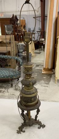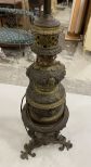 Antique Metal Ornate Lamp, portrait faces, footed. Antique Metal Ornate Lamp, portrait faces, footed.