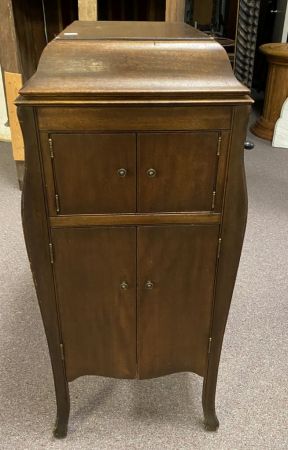 Victrola Talking Machine VV-X 454136, missing lid hinge, in working condition, light wear, 45"h., 21"d. Victrola Talking Machine VV-X 454136, missing lid hinge, in working condition, light wear, 45"h., 21"d.