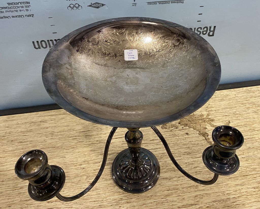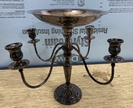England Silver Plate Center Piece and Candle holder, 14"h., 14"w. England Silver Plate Center Piece and Candle holder, 14"h., 14"w.