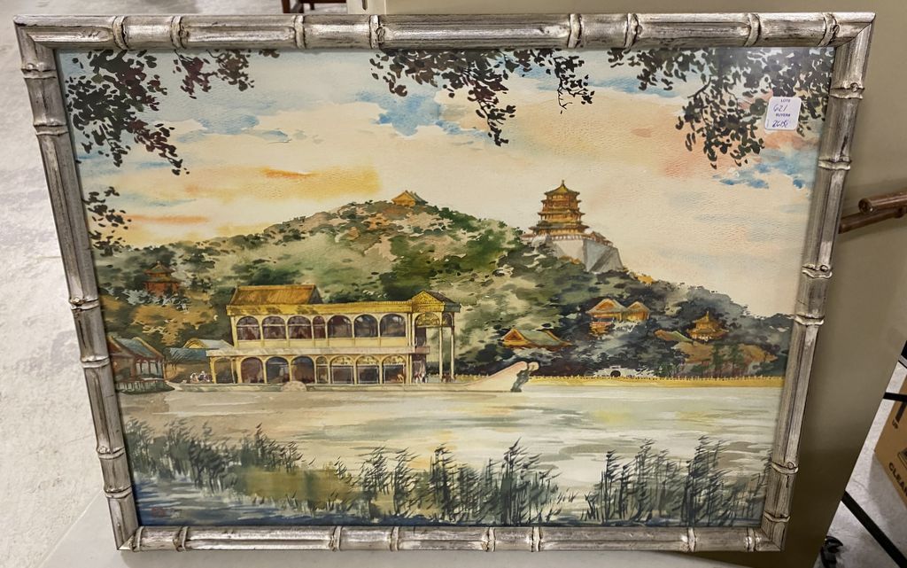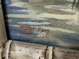 Z.P. Feng Watercolor of Boat, landscape, silver bamboo framed, 25"h. ,19"w. Z.P. Feng Watercolor of Boat, landscape, silver bamboo framed, 25"h. ,19"w.