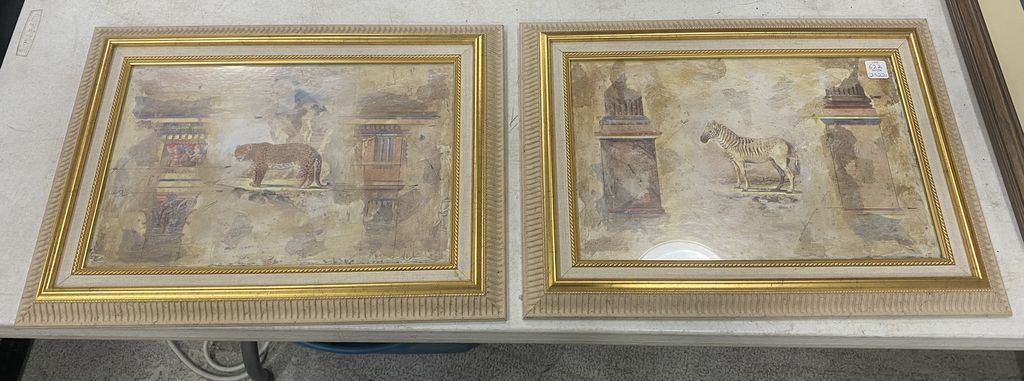 Two Jaguar and Zebra Prints Framed, glassed. Two Jaguar and Zebra Prints Framed, glassed.