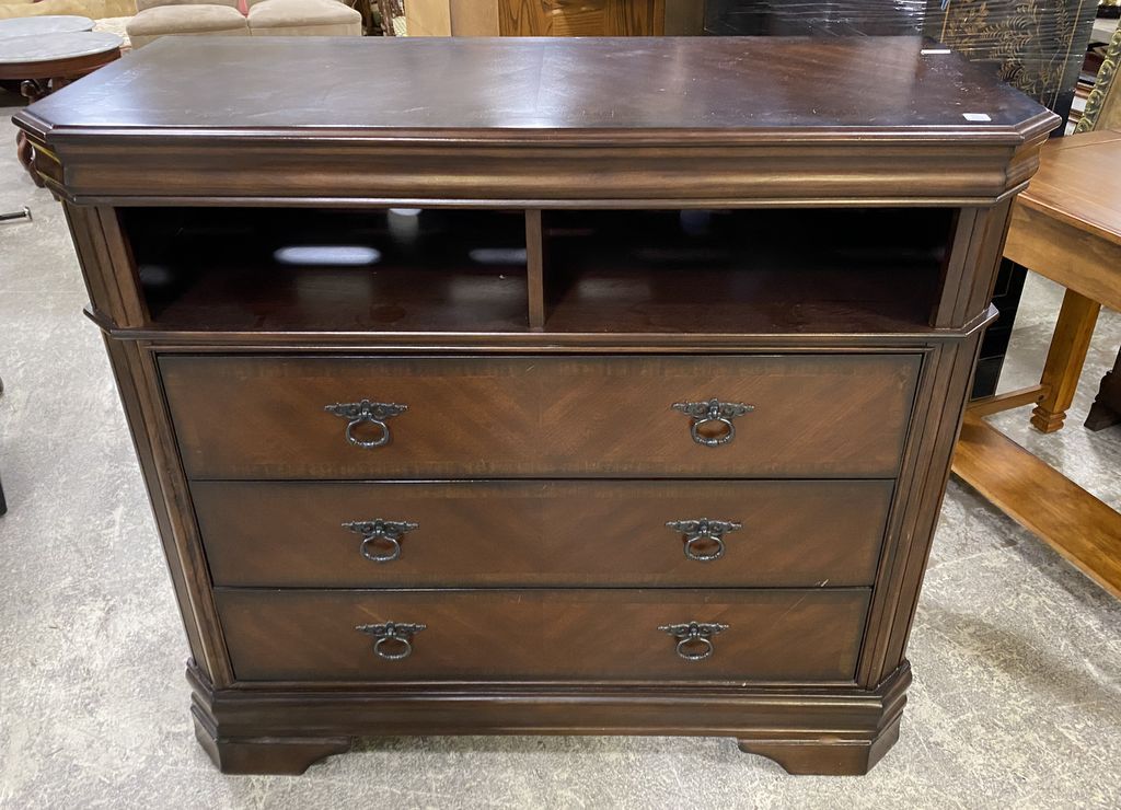 Modern Cherry Chest/TV Stand, three drawers, two open slots, 41"h., 47"w., 20"d Modern Cherry Chest/TV Stand, three drawers, two open slots, 41"h., 47"w., 20"d