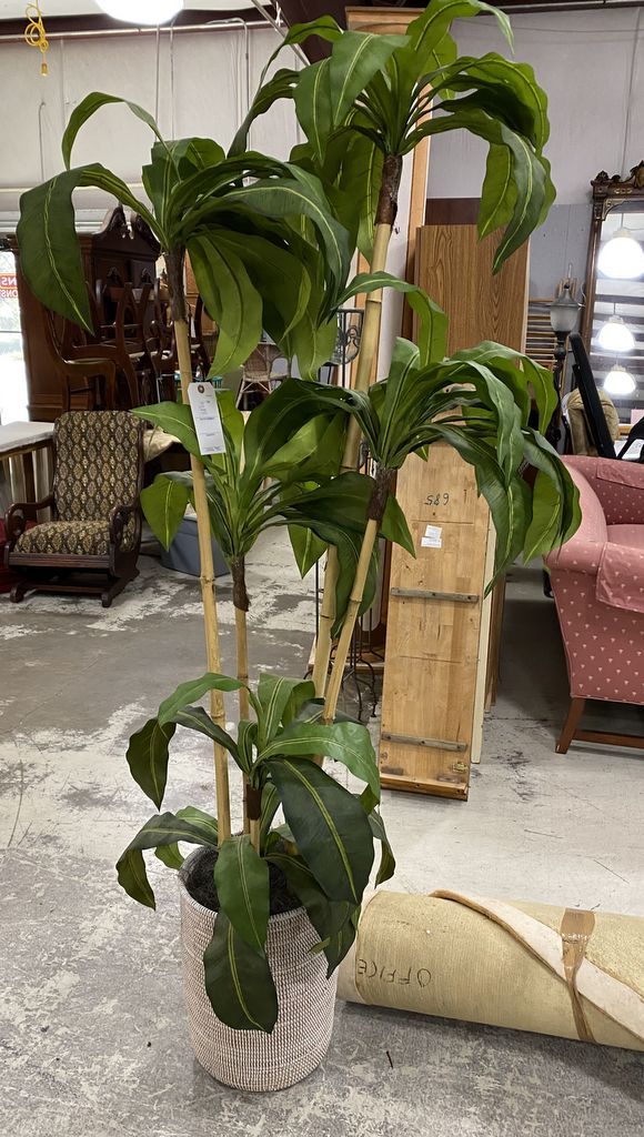 Decorative Artificial Plant, in woven planter, palm replica, 80"h. Decorative Artificial Plant, in woven planter, palm replica, 80"h.