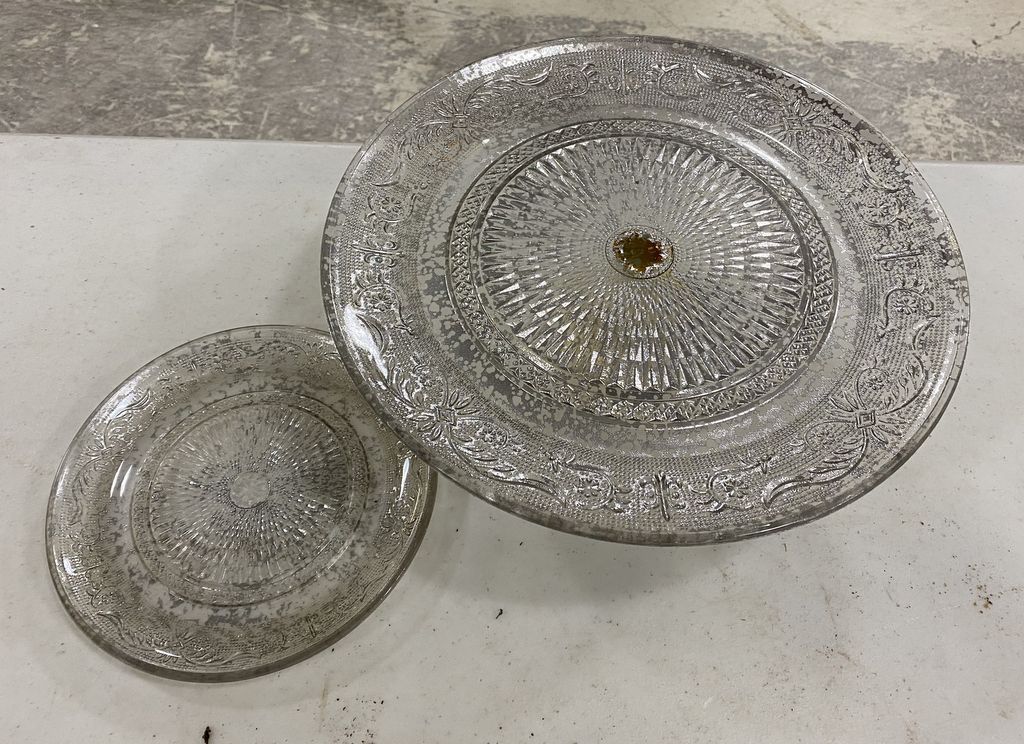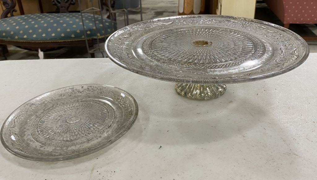 Silver Colored Glass Cake Stand and Plate Silver Colored Glass Cake Stand and Plate