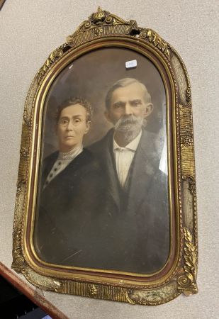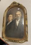 Heirloom Portrait Print of J. E. Haynes and Wife of photo taken in 1914, ornate gold gilt framed, 20"h. ,12"w. Heirloom Portrait Print of J. E. Haynes and Wife of photo taken in 1914, ornate gold gilt framed, 20"h. ,12"w.