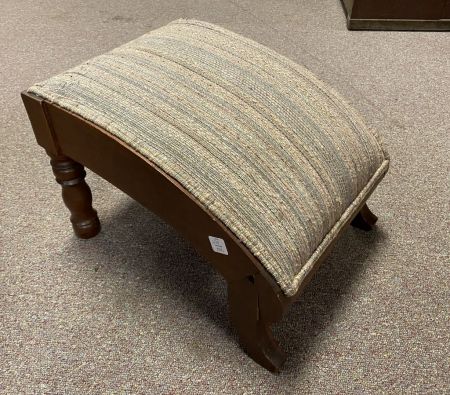 Wood Foot Stool, fabric upholstery, mahogany, 12"h., 19"w. Wood Foot Stool, fabric upholstery, mahogany, 12"h., 19"w.